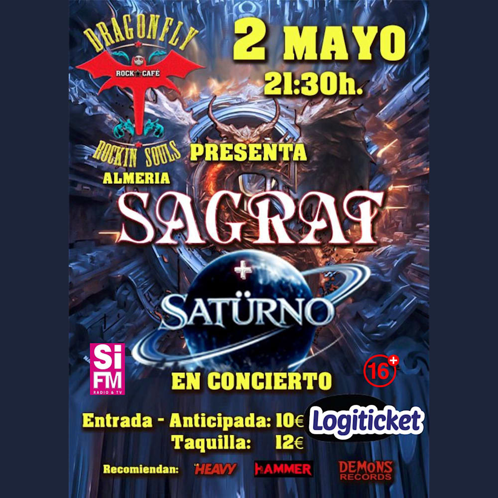 El próximo 2 de Mayo en la sala Dragonfly Rock Café de los grupos Sagrat y Saturno nos traeran su Rock para celebrar la primavera con buena música
